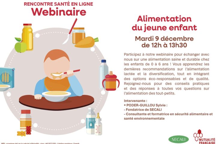 Rendez-vous le mardi 9 décembre de 12h à 13h30 pour un webinaire intitulé « Alimentation du jeune enfant ».
